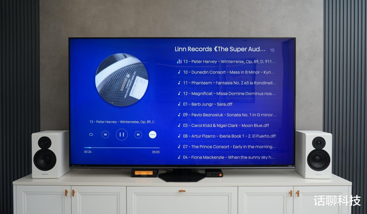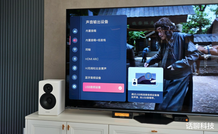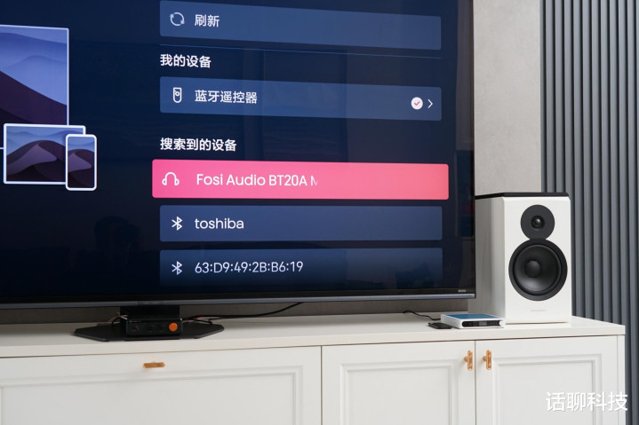 悉数我就换了一种通顺电视当输入源的念念路,奈何通顺的呢?海信电视85E8S旗舰电视采用音效为USB输出模式,径直把原声数字信号输出给飞傲温拿胆缓冲R2R解码器,经其革新为模拟信号,再输出给弗西音频BT20A MAX蓝牙功放,最终输出给丹拿新境界Emit20无源音箱。