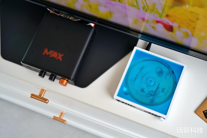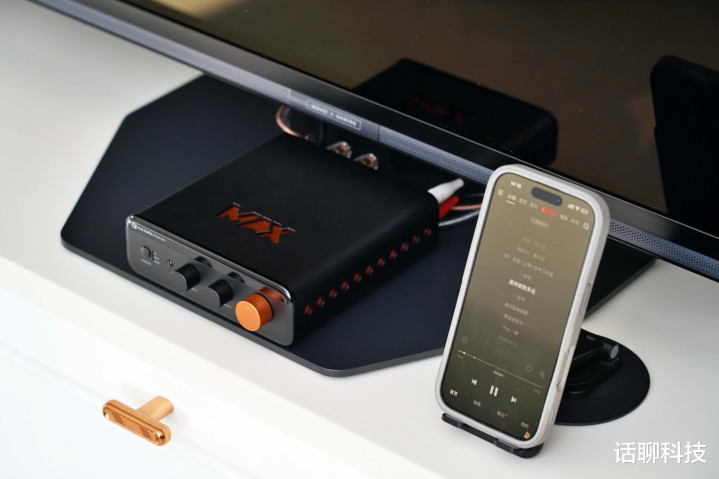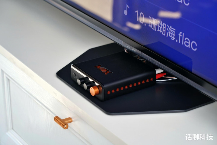 居品作念得很工致,高度4.5cm,宽度14cm,深度14.9cm,也就飞傲便携式CD机大小,但细节很耐看,CNC铝合金铸造机身和旋钮,主动散热经营,内置静音电扇,外壳配有橙色散热网罩,不仅热剖析性更好,而且给的嗅觉相配的跳脱颜面。