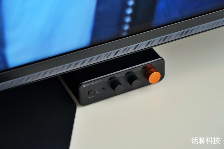机身正面经营相配检朴,莫得仪容盘,检朴输入信号换取灯经营,左侧是电源兼模式按键,居中是Bass低音、TREBLE高调子节旋钮(带中点定位经营),最右侧是音量旋钮,呼应金属散热孔的橙色经营,况且搭载的是精密马达电位器。